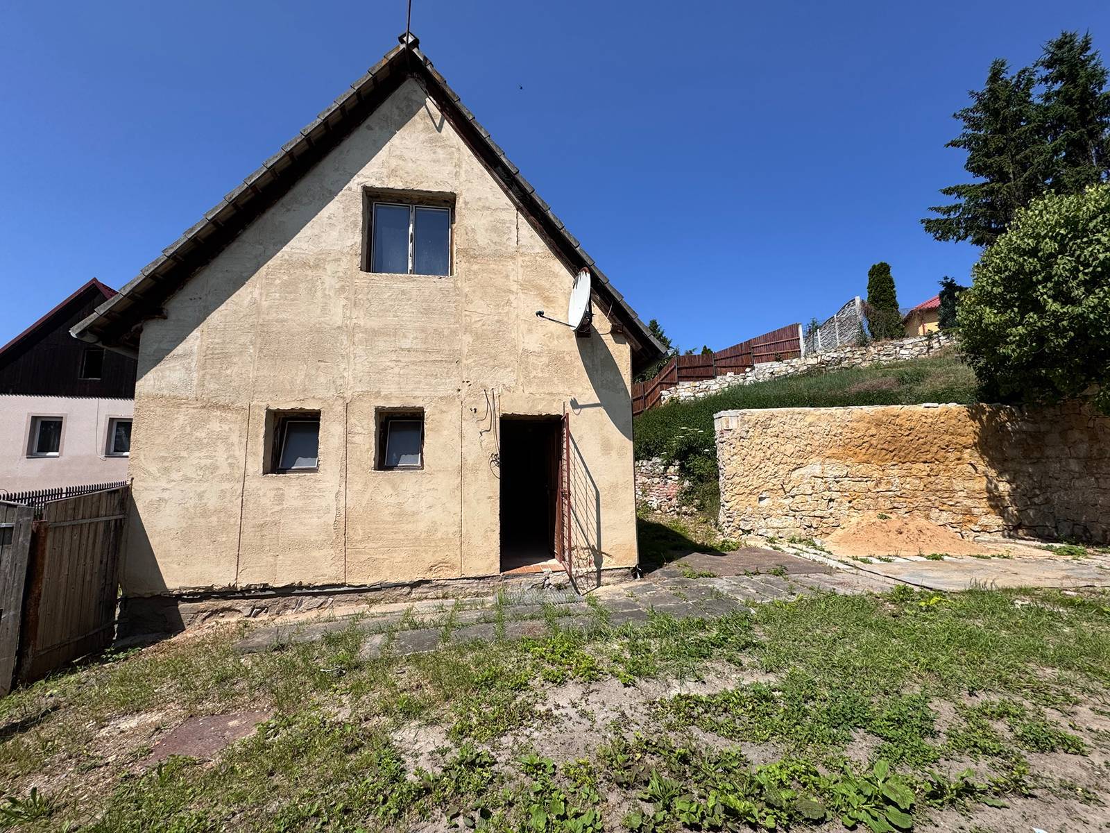 Nabízíme k prodeji rodinný dům ve vsi Veletice část obce Holedeč. Dům je dispozičně 3+kk a je zcela připraven na rekonstrukci dle Vašich představ. V přízemí se nachází vstupní chodba, oddělená toaleta a velmi prostorná koupelna, která díky své velikosti nabízí jak rohovou vanu, tak sprchový kout. Kuchyňský kout je propojen s obývací částí, ve které se nabízí vyhotovení francouzských dveří na zahradu či terasu. V patře lze ponechat dvě místnosti nebo zcela otevřít celý půdní prostor. Dům je napojen na veřejný vodovod, elektrický proud, vytápění řešeno tuhými palivy a odpady žumpou. Na střeše jsou betonové tašky. Na pozemku se dála nachází budova se zastavěnou plochou 50 m2, kterou lze využít různými způsoby. Např. jako garáž, dílnu, prostor k podnikání a jiné. Možnost vjezdu na pozemek. Doporučujeme osobní prohlídku. Neváhejte kontaktovat makléře.