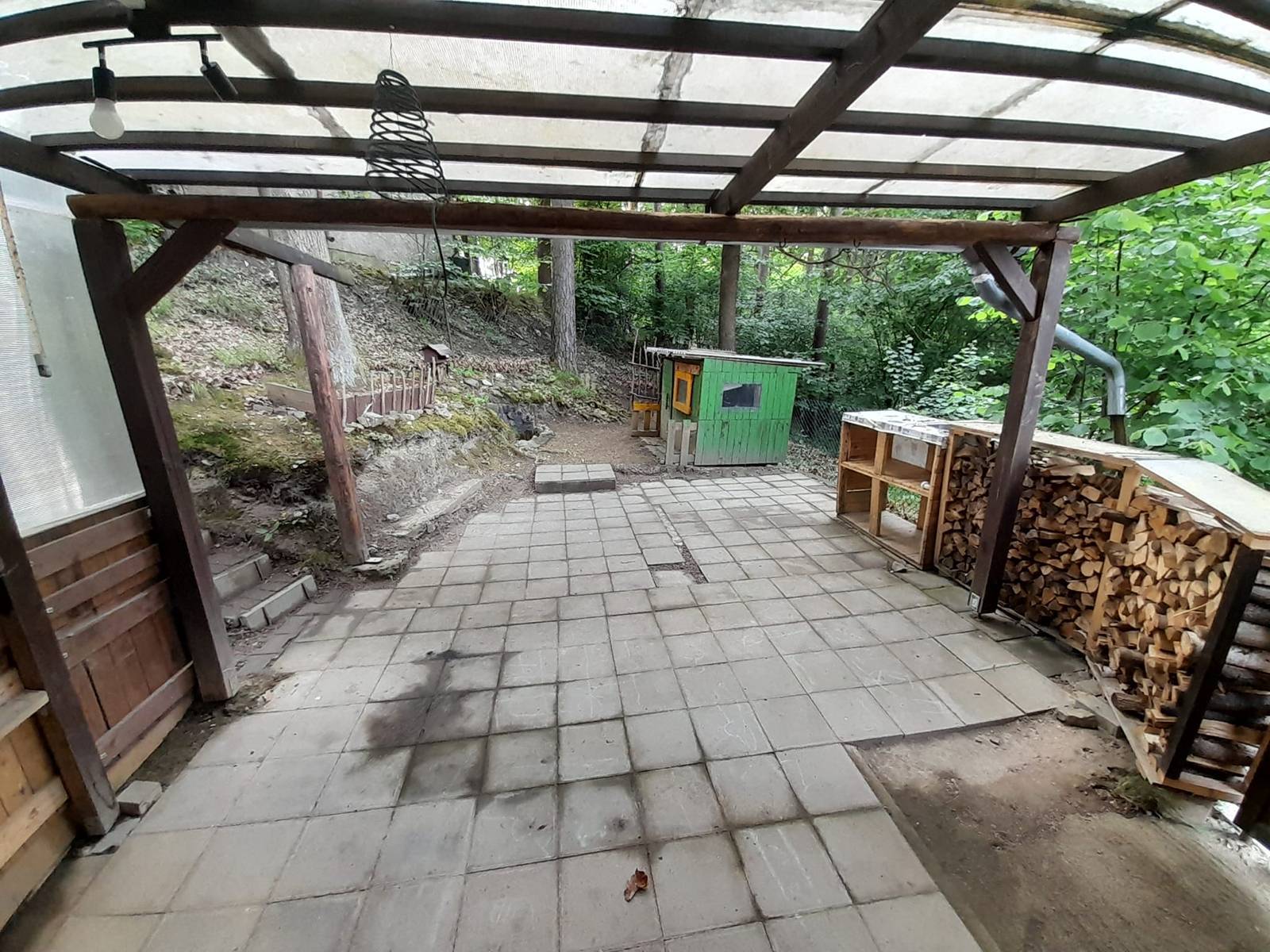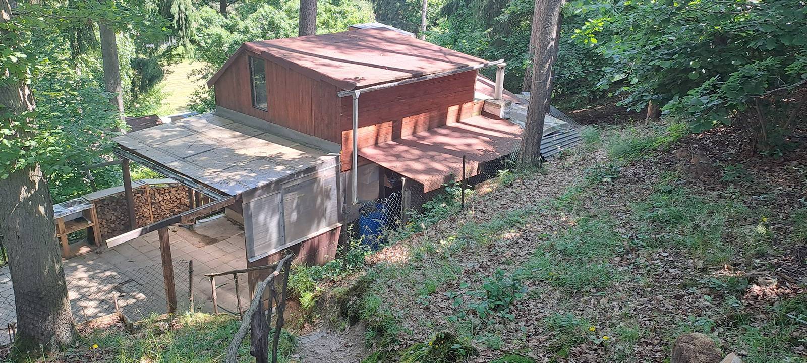 Nabízíme k prodeji chatu v obci Doudleby u Českých Budějovic ve známé chatové oblasti nedaleko řeky Malše. Dřevěná chata v započaté rekonstrukci o celkové ploše 18 m2. Má vlastní elektrickou přípojku a suché WC, voda není zavedena - je k dispozici z nedaleké studánky. Chata je na pozemku jiného vlastníka a stávající majitel má řádně uzavřenou nájemní smlouvu na užívaný pozemek i okolo chaty. Ve spodním podlaží chaty je hlavní obytná místnost vytápěná kamny a za hlavní místností je malý úzký pokoj. V podkroví je další velká místnost. V celé chatě je rozvedena elektřina. Před chatou je zastřešený prostor, který je využíván jako venkovní kryté posezení. Podél chaty je zastřešený úzký prostor na jehož konci je WC. Plocha před chatou je vydlážděna a je oplocena nízkým plůtkem. Do blízkosti chaty lze přijet vozem, avšak nelze zajet přímo k chatě na pozemek. Přístup k chatě je po strmé pěšině, proto nemovitost nemusí být vhodná pro osoby s pohybovým omezením. Vzdálenost od příjezdové cesty k chatě je cca 14 metrů. Vzdálenost z centra Českých Budějovic cca 13 km.