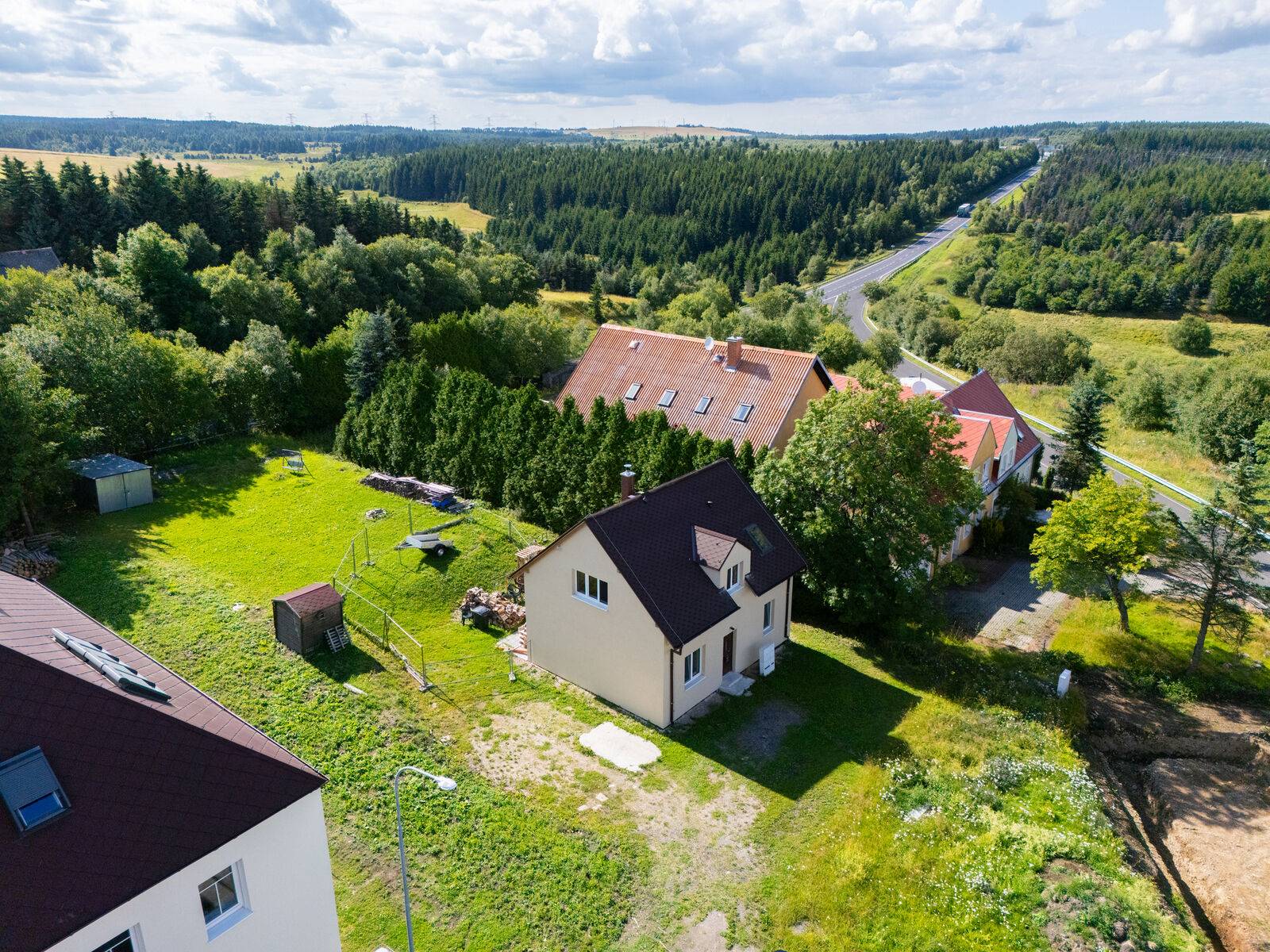 Nabízíme k prodeji rodinný dům v malebné části obce Hora Svatého Šebestiána, v okrese Chomutov. Tento moderní patrový cihlový dům nabízí ideální zázemí pro rodiny s dětmi a představuje skvělou příležitost pro klidný rodinný život. Dům disponuje 4 pokoji, které poskytují dostatek prostoru pro jednotlivé členy rodiny. Díky celkové užitné ploše 100 m² a zastavěné ploše 69 m² nabízí dostatek místa jak pro společné chvíle, tak pro soukromí. Novostavba je navržena tak, aby splnila všechny požadavky moderní rodiny. V přízemí najdeme vstupní předsíň, ložnici, koupelnu s toaletou, rohovou vanou a dostatečným prostorem pro pračku a sušičku, dále pak obývací pokoj spojený s kuchyňským koutem a vstupem na zahradu, který je ideální pro rodinné posezení a trávení volného času. V patře pak je myšleno na další koupelnu, kterou si můžete obložit dle vlastního vkusu (nabízíme foto s vizualizací) a dále jsou tu dva samostatné pokoje. Vytápění domu je řešeno elektrickými panely a krbovými kamny na dřevo s výměníkem, které zajistí příjemné teplo během chladných měsíců, ohřev vody řešen elektrickým bojlerem. O odpadní vodu se postará samostatná čistička. Pozemek není zatím oplocen a čítá celkem 832 m2 včetně zastavěné plochy domu 69 m2 a je skvělým místem pro rodinné aktivity, zahradničení a odpočinek. Zahrada vybízí k vybudování altánku či terasy, kde si můžete užívat slunečné dny venku s rodinou a přáteli. Dům je umístěn v klidné lokalitě s nízkou dopravní intenzitou, což vytváří bezpečné prostředí pro hraní na zahradě nebo pro procházky. Dostupnost veřejné dopravy, především autobusu, usnadňuje cestování do okolních měst a obcí. Internet je samozřejmostí, což zajistí potřebné spojení s okolním světem, ať už pro práci nebo zábavu. Tento rodinný dům je dokonalým místem pro výchovu dětí a pro život v harmonickém a bezpečném prostředí. Optimální variantu financování zajistíme. V případě zájmu o prohlídku nás neváhejte kontaktovat.