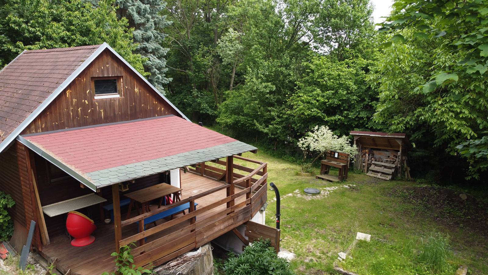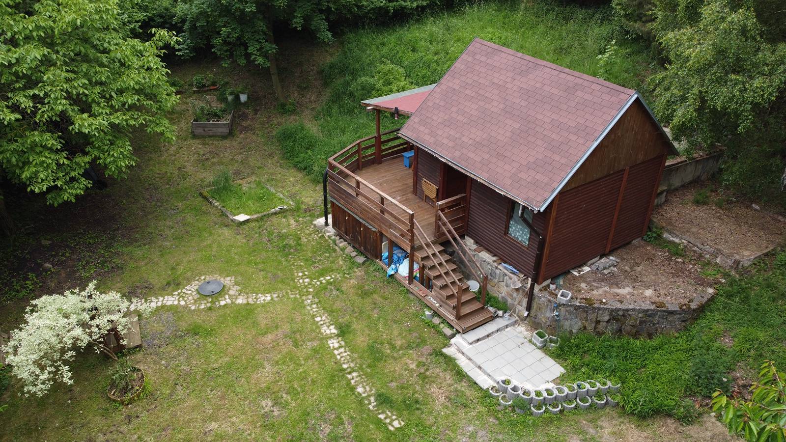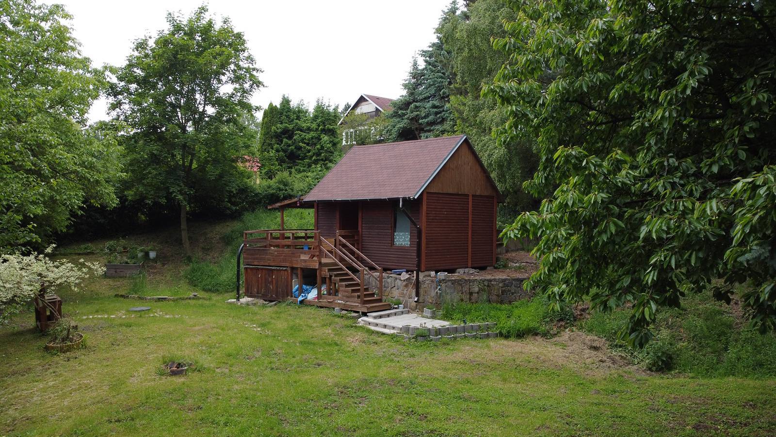 Prodej útulné dřevěné chaty na velkém pozemku – Dřevce Hledáte klidné místo uprostřed přírody, kde si opravdu odpočinete? Nabízíme k prodeji krásnou udržovanou dřevěnou chatu na slunném pozemku o výměře 1.362 m², nacházející se na okraji malé a klidné obce Dřevce (okres Litoměřice). Chata je situována v zeleném zákoutí s plně vzrostlými stromy, které zajišťují naprosté soukromí. Na pozemku je vlastní vrtaná studna, elektřina je připojena, vytápění zajištěno elektricky (klimatizační jednotka s funkcí topení). Dispozice a vybavení: - prostorná zastřešená terasa s posezením a výhledem do zeleně - útulný obytný prostor s kuchyňským koutem, kamny, sedačkou a schody do patra - patro slouží jako ložnice – ideální pro přespání 3–4 osob - dřevěné obložení v interiéru, přirozené světlo, kompaktní a praktické řešení - skladovací prostor pod terasou a na pozemku Pozemek: - 1.362 m² – částečně oplocený, svažitý, zatravněný - ideální pro zahrádkáře, relaxaci i hry s dětmi - ohniště, zvýšené záhony, kompostér, plně přírodní okolí Vhodné pro: - víkendovou rekreaci, rodinné pobyty, nebo jako investici - milovníky přírody, klidu a jednoduchého venkovského života - možnost dalšího využití nebo rozšíření dle vašich představ Chata je připravena k okamžitému užívání – stačí přijet a užívat si klid a přírodu. Obec Dřevce leží v krásné krajině poblíž CHKO České středohoří, s dobrou dostupností do Litoměřic a Lovosic. Cena na dotaz.